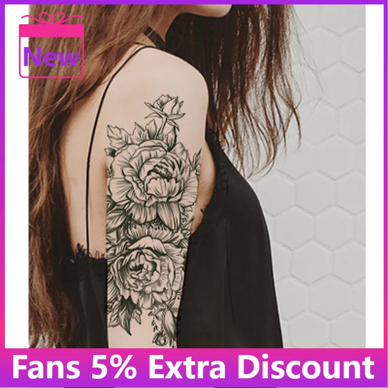 1 шт. временные наклейки для тату с черной розой, дизайн, полный цв...