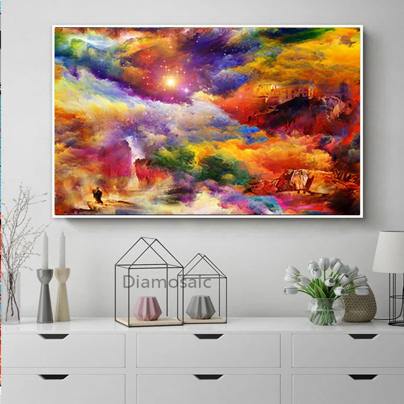 Алмазная 5D Вышивка, картина из страз сделай сам с фиолетовыми обла...