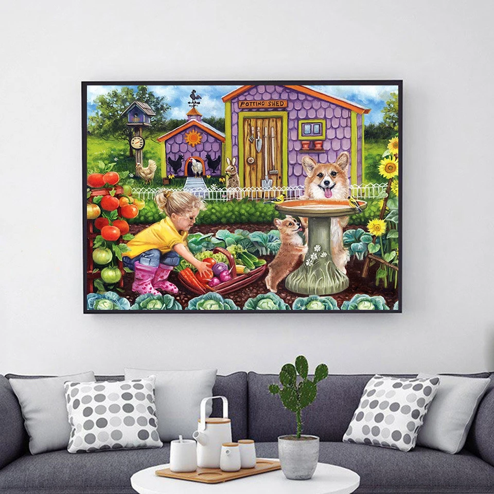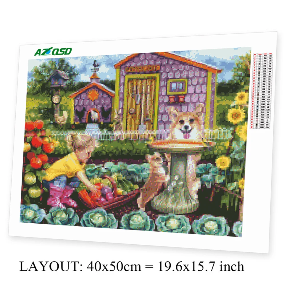 AZQSD 5d алмазная картина сад дом вышивка крестиком Девушка Алмазная вышивка собаки пейзаж ручной работы подарок домашний декор рукоделие