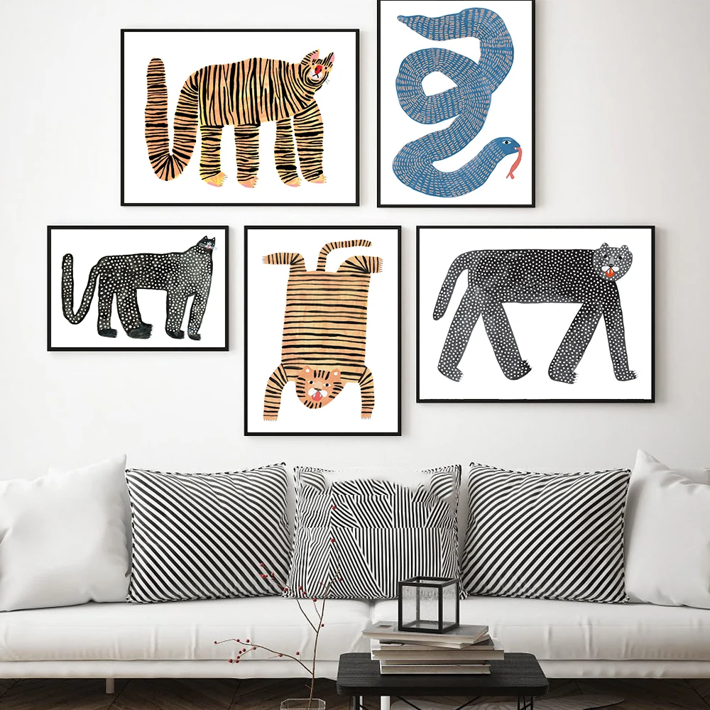 Плакат в стиле бохо, свиммер, гепард, тропический лес, холст, живот...