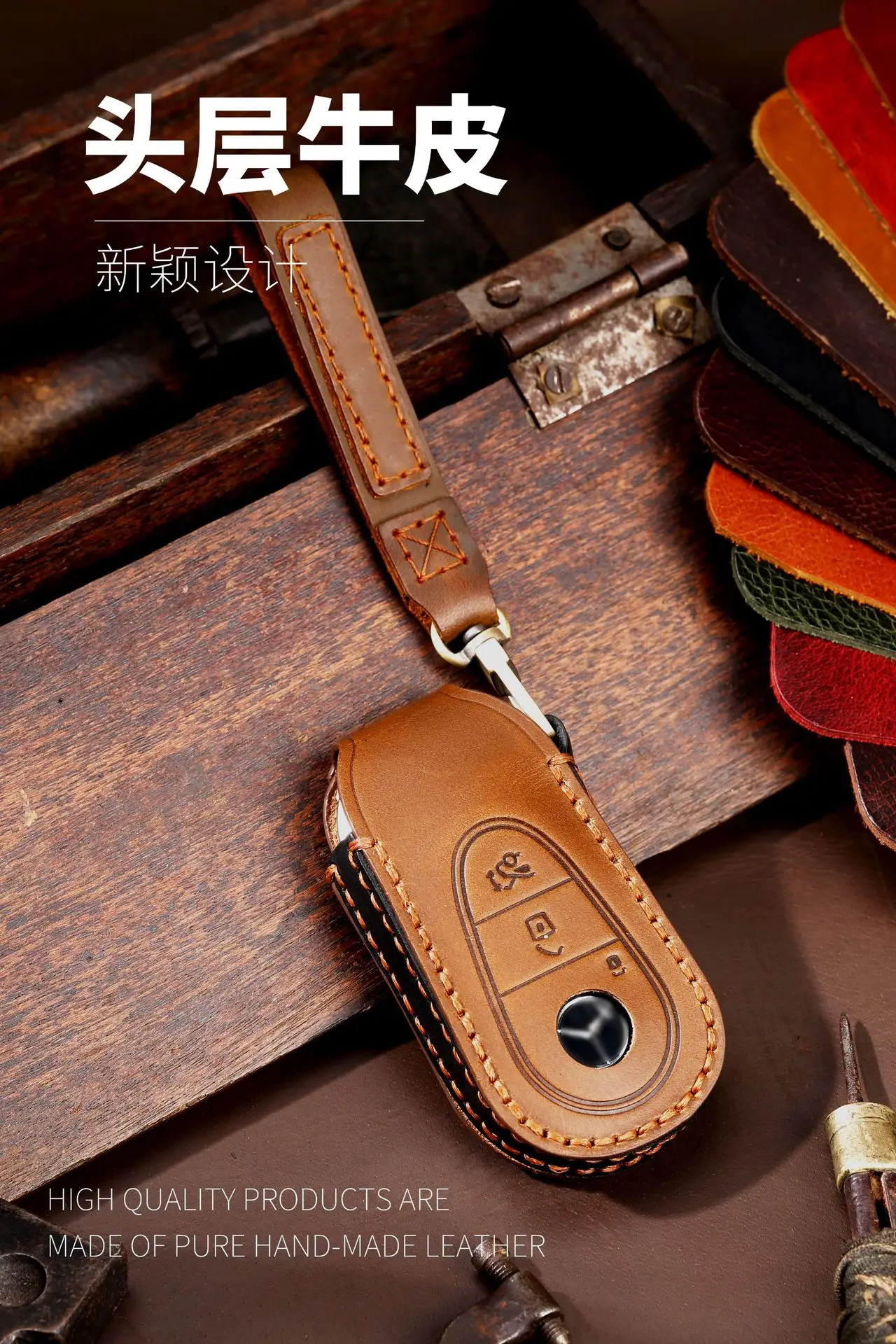 Кожаный чехол для автомобильного ключа ручной работы, защитный чехол для ключа для нового Mercedes Benz C S Class 2021 W223 W206 S400L S450L, высокое качество