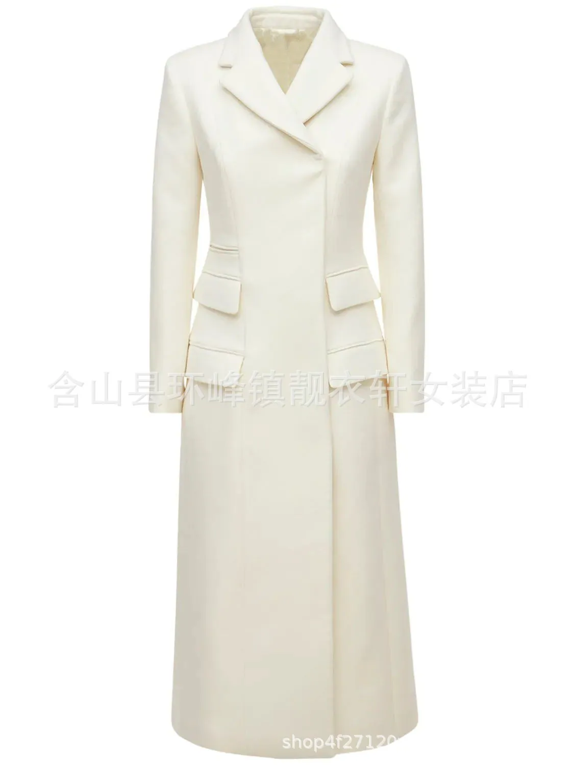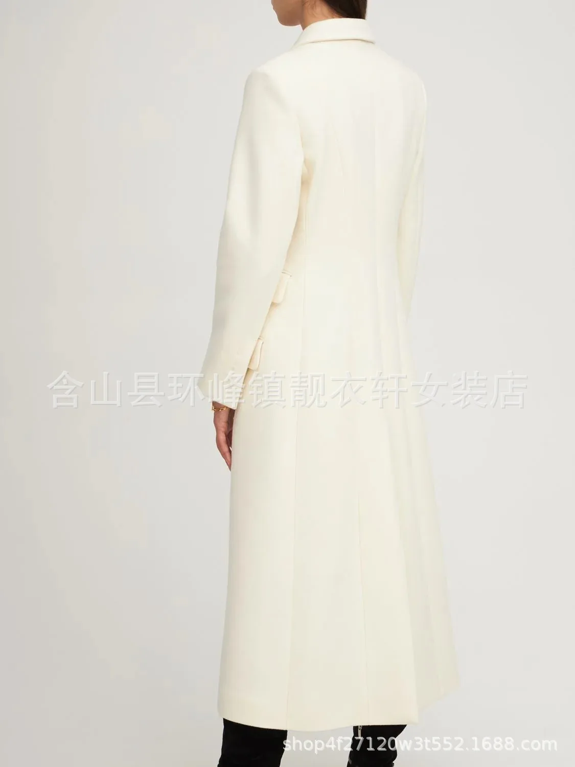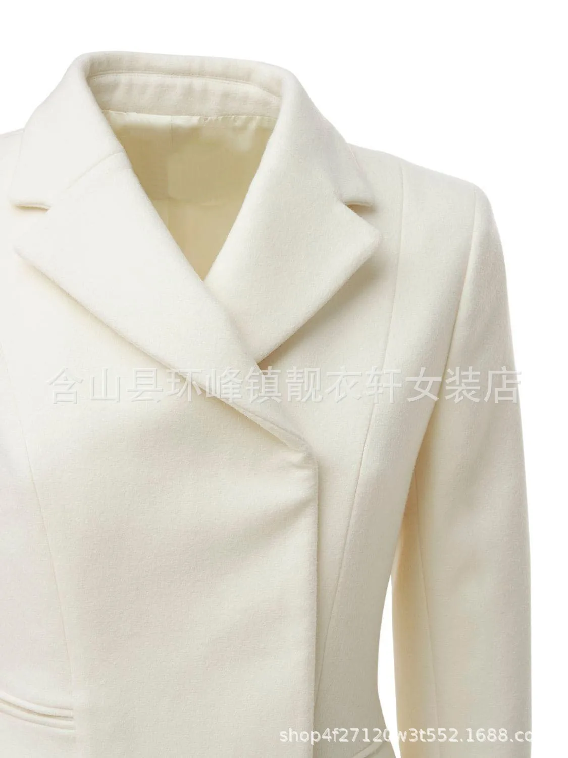 Женское зимнее шерстяное пальто, Повседневная ветровка с широкой талией, куртка из смешанной шерсти, пальто, женская белая верхняя одежда, новинка 2022