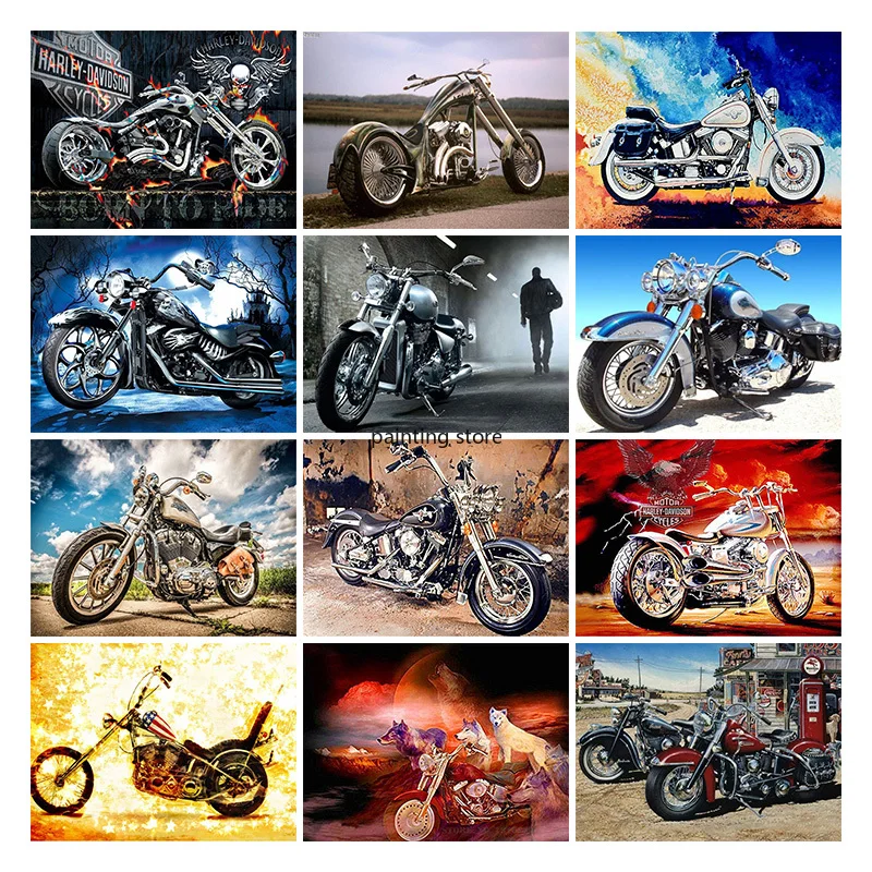 Алмазная живопись 5D сделай сам, квадратнаякруглая Алмазная вышивка мотоцикл, Череп, Алмазная мозаика, вышивка крестиком