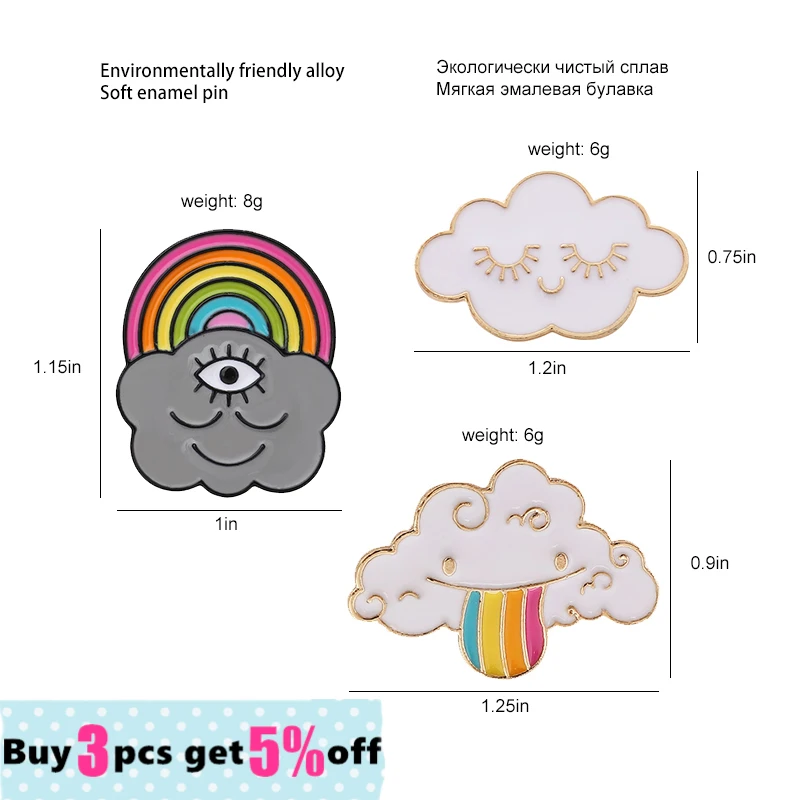 Облако Радуга эмаль лацкан заколки брошь значки Ткань Рюкзак Сумки шляпы кожаные джекеты украшения вдохновляющие ювелирные изделия оптом