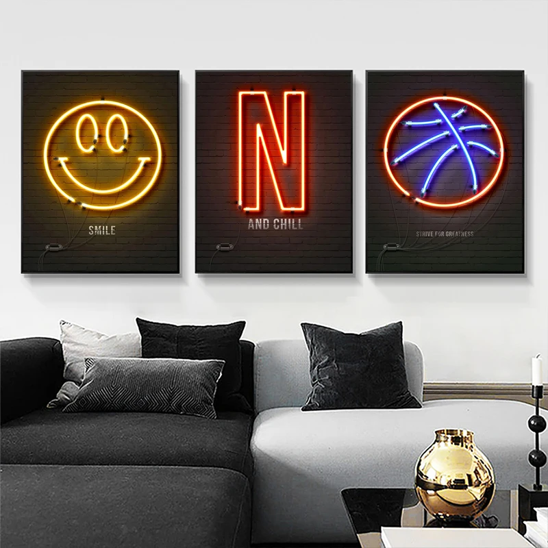 Неоновый светлый постер для геймеров и принты в стиле ретро, звуковая кассета, гитара, настенное художественное изображение, холст для баскетбола, картина для декора комнаты мальчика