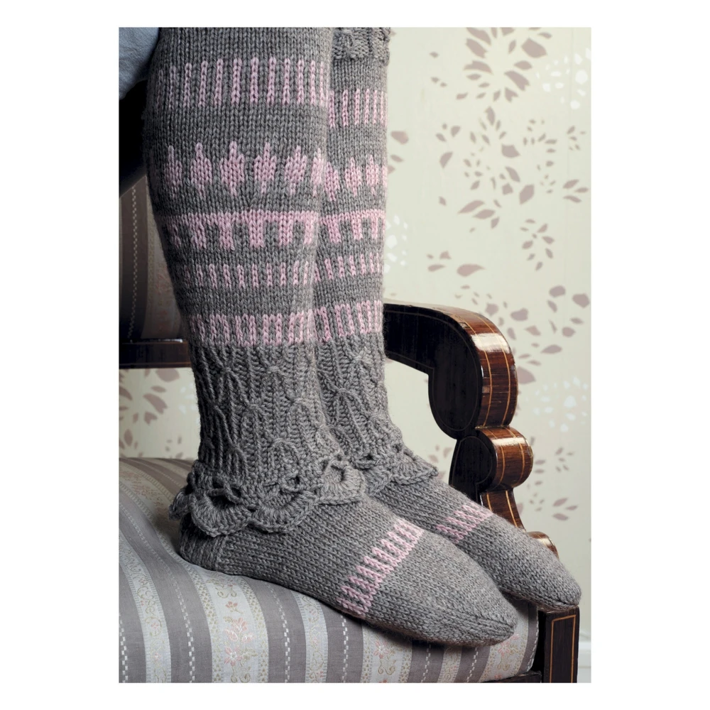 Вязаные носочки – это особая категория hand-made изделий, которая остается популярной уже многие десятилетия. Связанные пушистой, мягкой пряжей модных расцветок носочки – это подарок на все времена, а также востребованная часть нашего зимнего гардероба. Поэтому любительницы вязания спицами неизменно возвращаются к этому аксессуару, осваивают новые способы вывязывания мыска и пятки, манжеты и паголенка, а также с удовольствием коллекционируют дизайны и узоры, подходящие именно для носочков. Автор этой книги финская мастерица Мерья Ойянпере возвела вязание носочков в ранг искусства! Фактурные и ажурные узоры, богатые украшения, стильные цветовые сочетания – все это делает носочки и гольфы, представленные в этой книге, настоящими шедеврами вязального мастерства. В книге вы найдете носочки для женщин и мужчин, практичные и просто красивые; вы даже увидите… свадебные гольфы, связанные роскошной белой пряжей!К каждому проекту приводятся подробные описания и схемы. Книга предназначена для всех любителей вязания спицами.