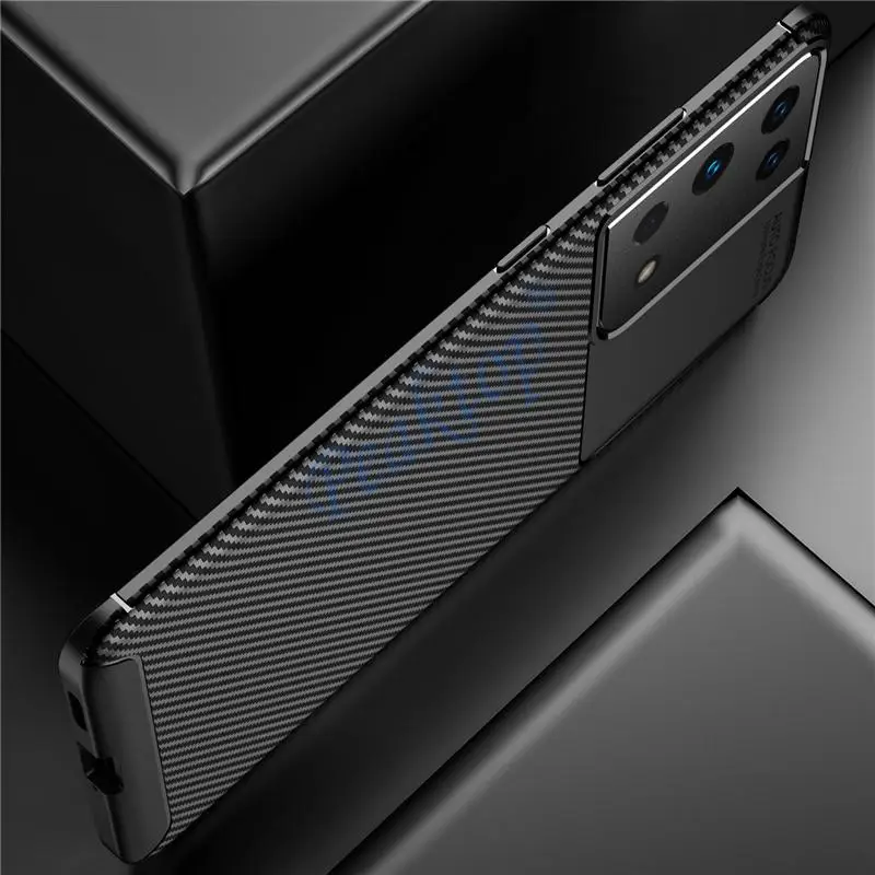 S21 ultra coque Fundas Capa углеродное волокно с текстурой под кожу...