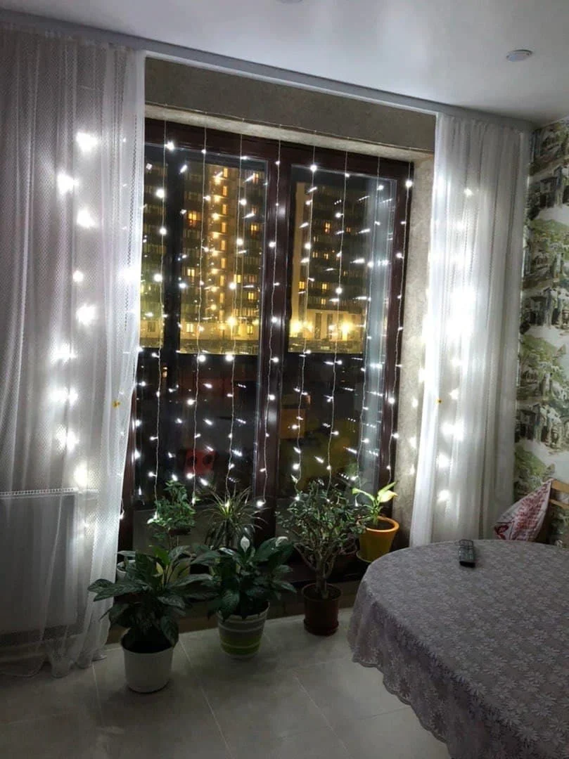Светодиодная гирлянда-штора. Идеально подходит для декоративного освещения помещений в любое время года (и летом и зимой). Гирлянда отлично смотрится в любом домашнем и офисном интерьере, на окнах, лестницах, колоннах, а так же на застекленных лоджиях и балконах.