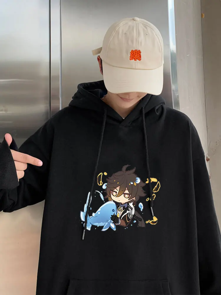 Женская/мужская толстовка с капюшоном Zhong Li, толстовка большого размера с принтом «Genshin Impact», толстовка с принтом «Kawaii», толстовка большого размера с 12 рисунками в стиле Харадзюку