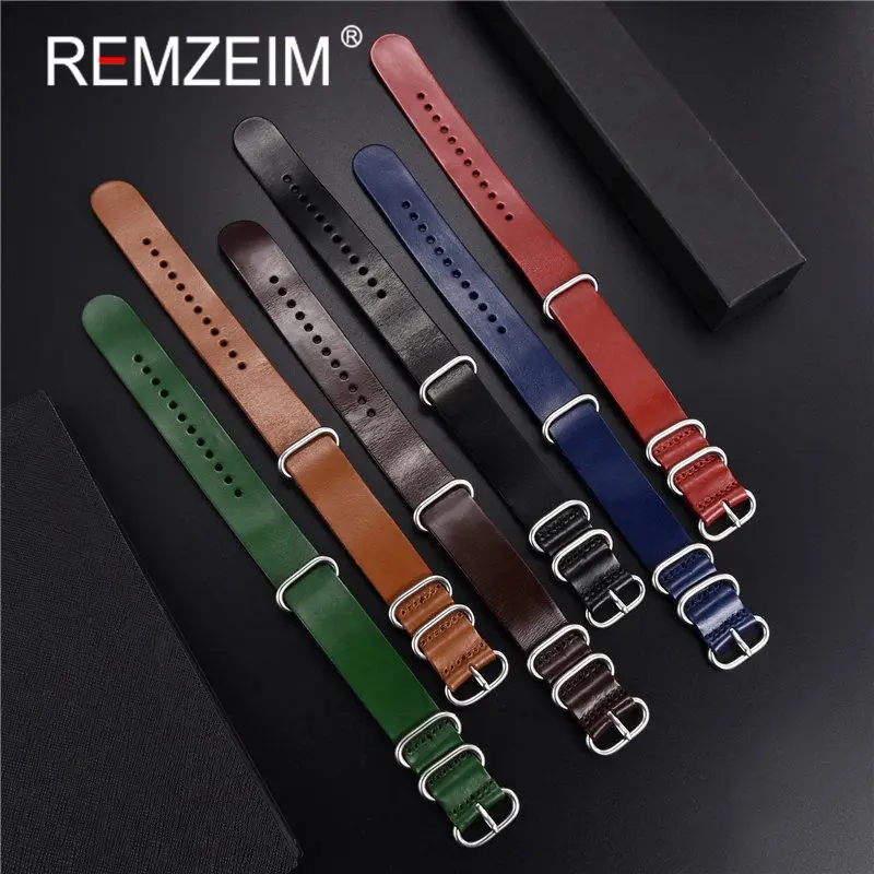 Ремешок для часов REMZEIM Nato ZULU из натуральной кожи в стиле ретро