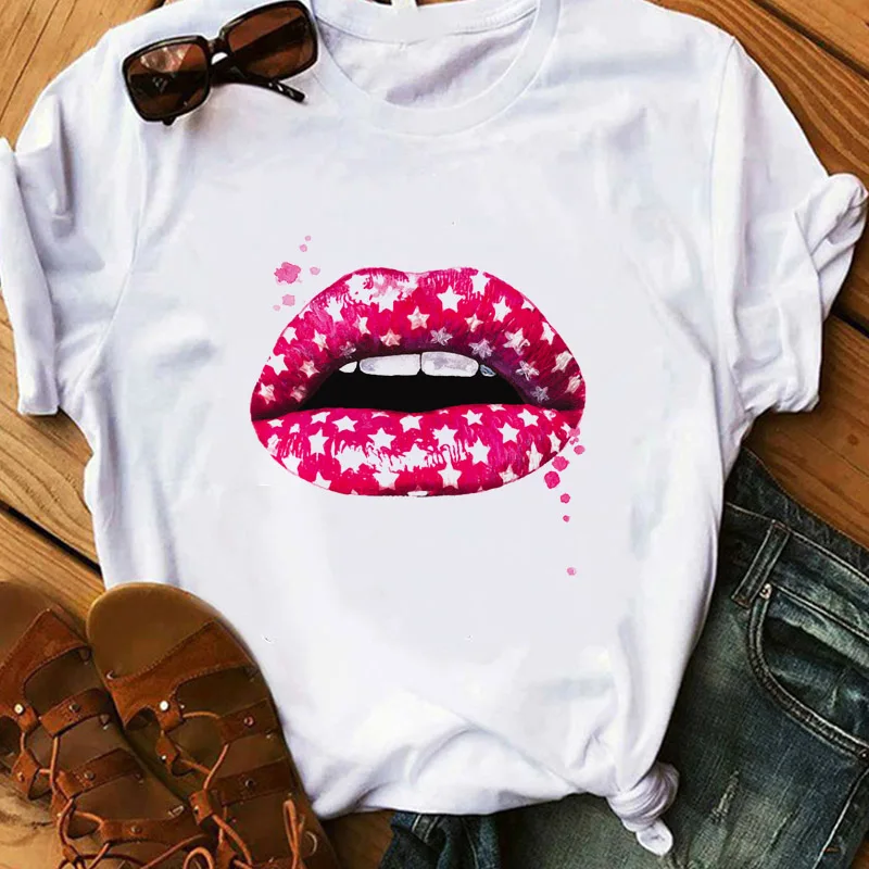 Красная помада, футболка, Женская парфюмерная Цветочная футболка для девушек, летняя женская Повседневная футболка