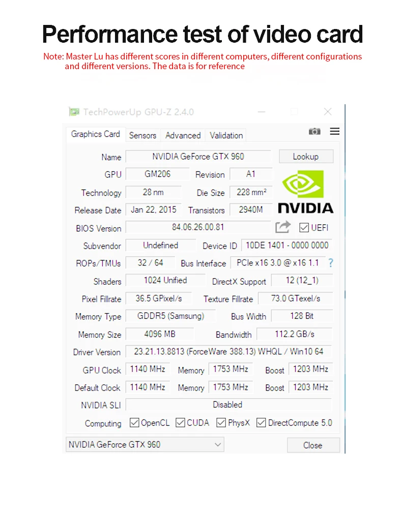 4. Из-за различных тестовых программ и компьютерных конфигураций, следующие параметры и детали только для справки