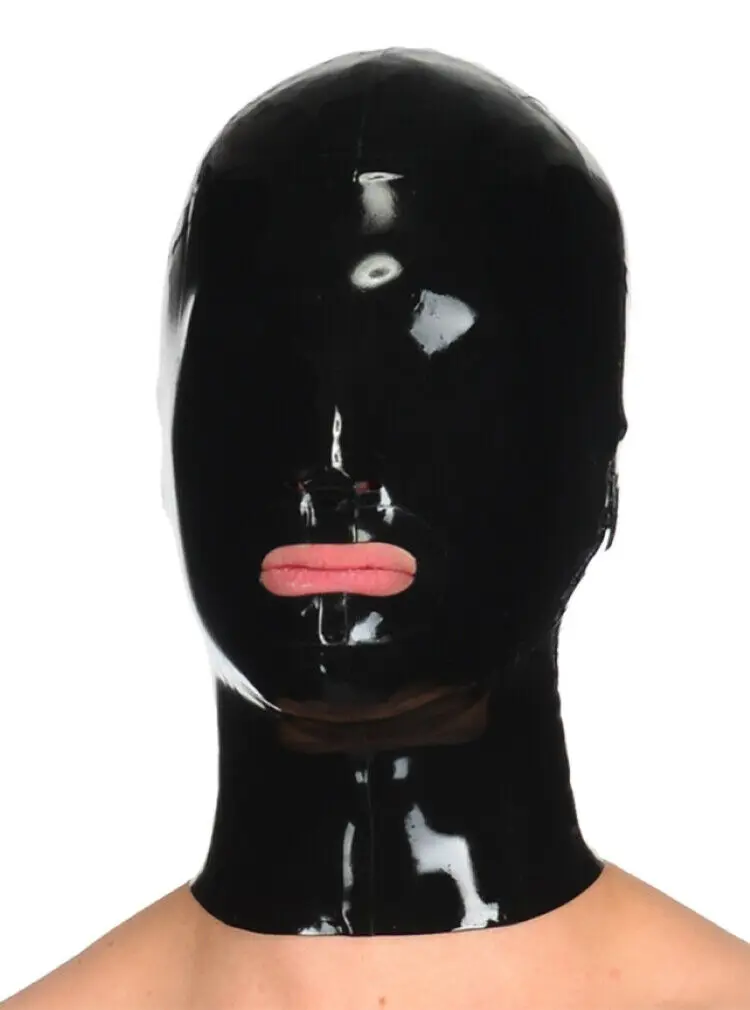 Латексная маска с капюшоном на молнии сзади для красивой девушки, о...