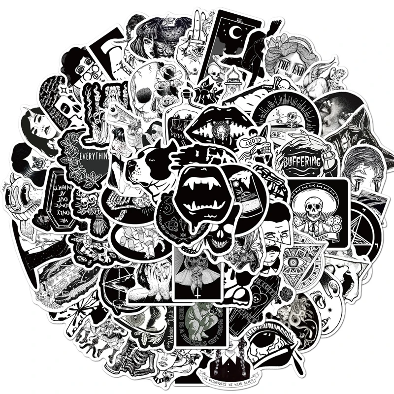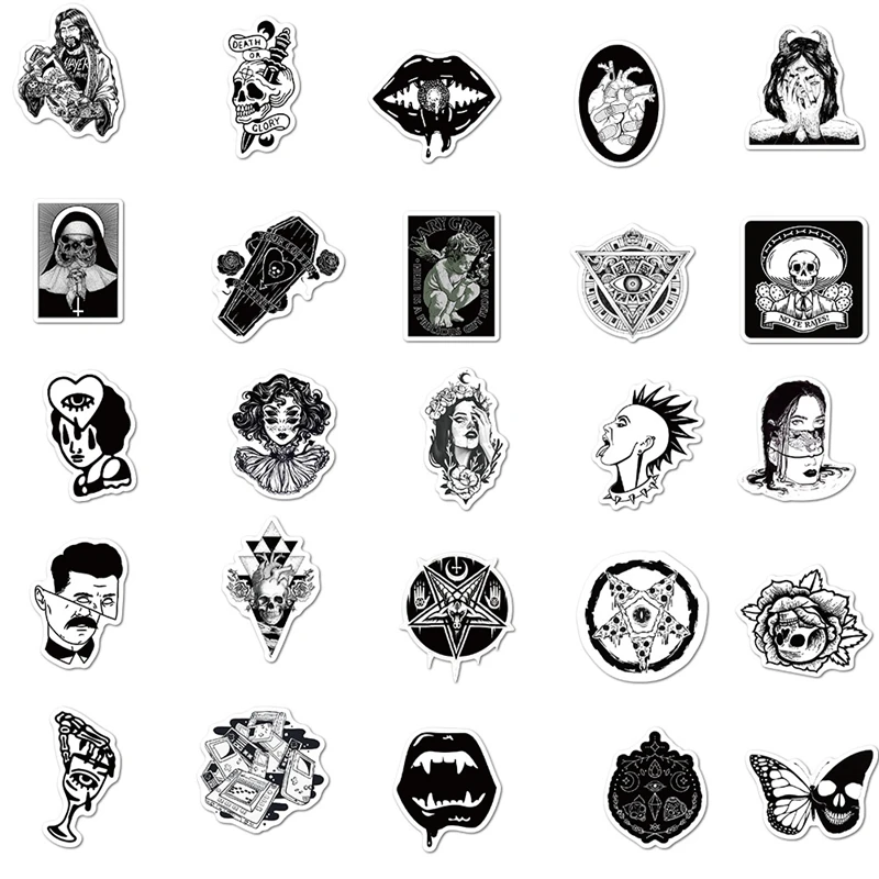50100 шт., черно-белые готические наклейки на тему ветра, ужасов и ...