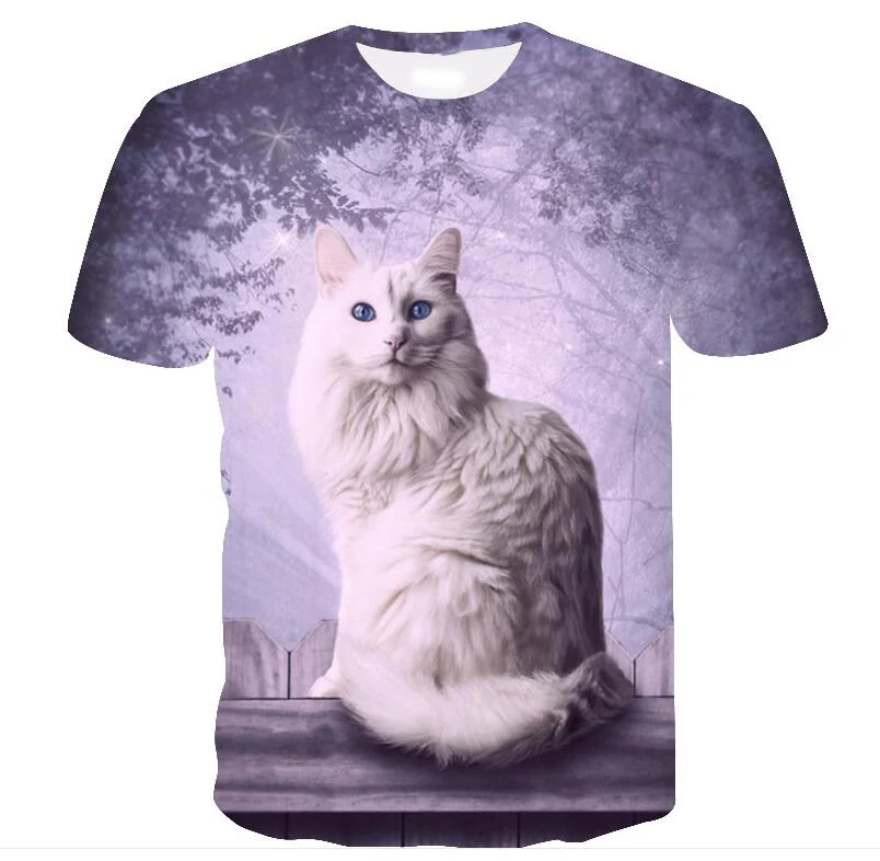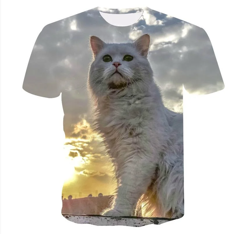Новая летняя футболка с 3D принтом кота, Повседневная футболка с ко...