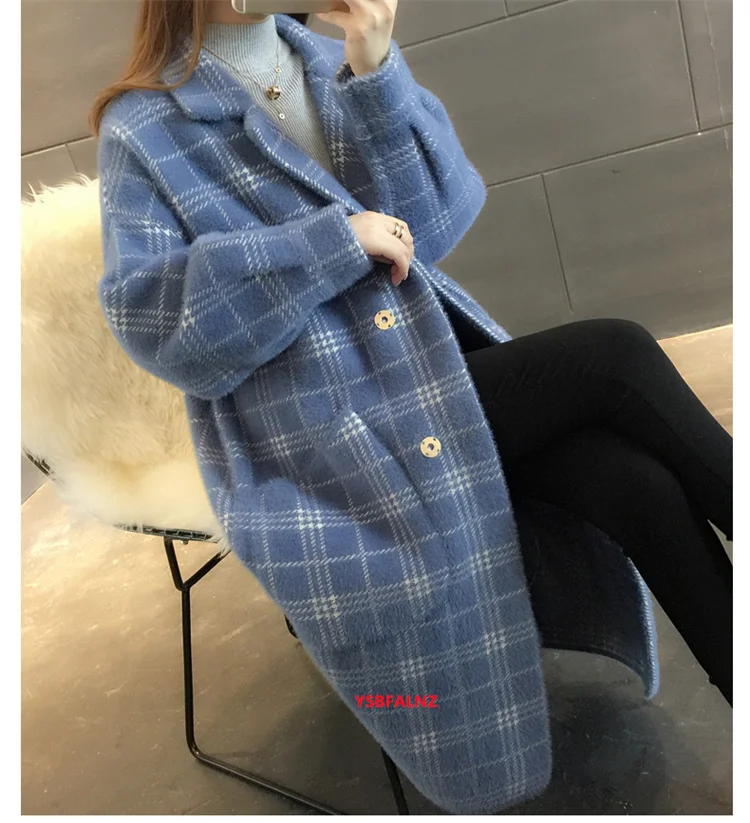 Новинка корейский свитер пальто осень зима Женская клетчатая куртка...
