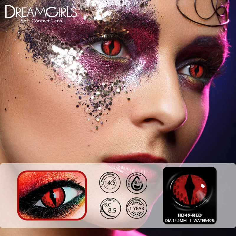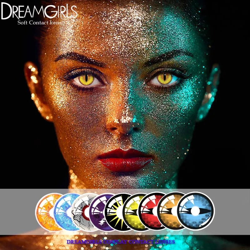 DreamGirls мягкие контактные линзы Alien Snake Eyes Cat Eyes серия для Хэллоуина Косметика страшная красная синяя желтая оранжевая