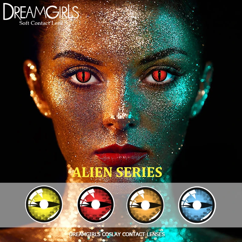 DreamGirls мягкие контактные линзы Alien змеиные глаза кошачьи глаза серия для Хэллоуина макияж страшная Косметика красный синий желтый оранжевый