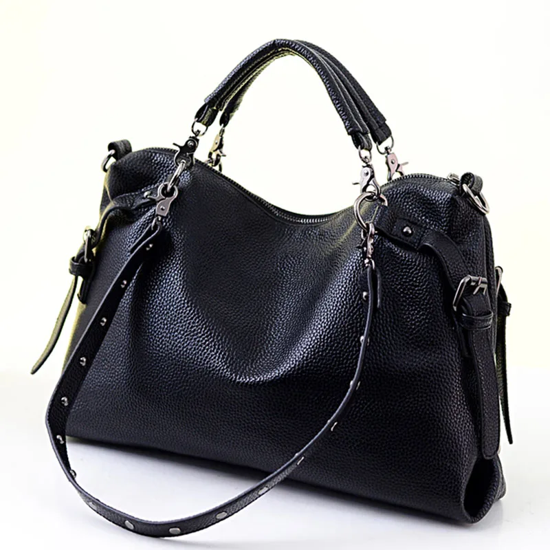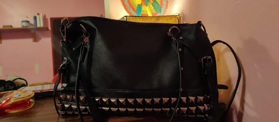Сумка очень красивая, но не из натуральной кожи, также не такая жесткая. Она поставляется с тремя типами ручек. Ручки были сломаны.