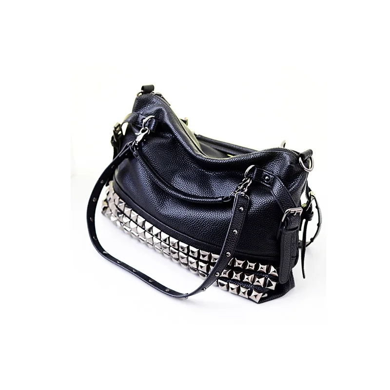 Женская сумка из искусственной кожи с заклепками; Новинка 2021 года; Модная СеребристаяЧерная Женская сумка-мессенджер из воловьей кожи; Сумка на одно плечо; Большие сумки