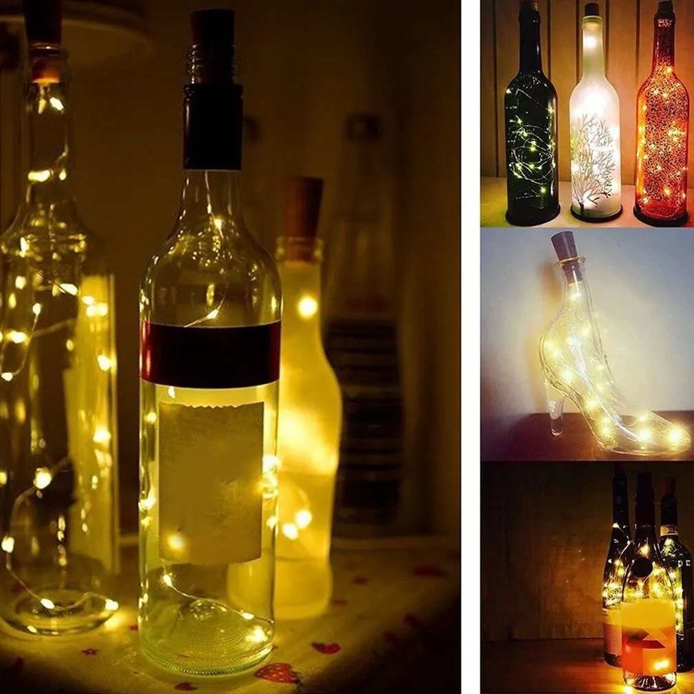 Светильники в форме винных бутылок Рождественская пробковая световая гирлянда, 20 светодиодов, медная проволока, мини-гирлянда в комплекте, украшение сделай сам, 2 м, 20 светодиодов и 1 м, 10 светодиодов