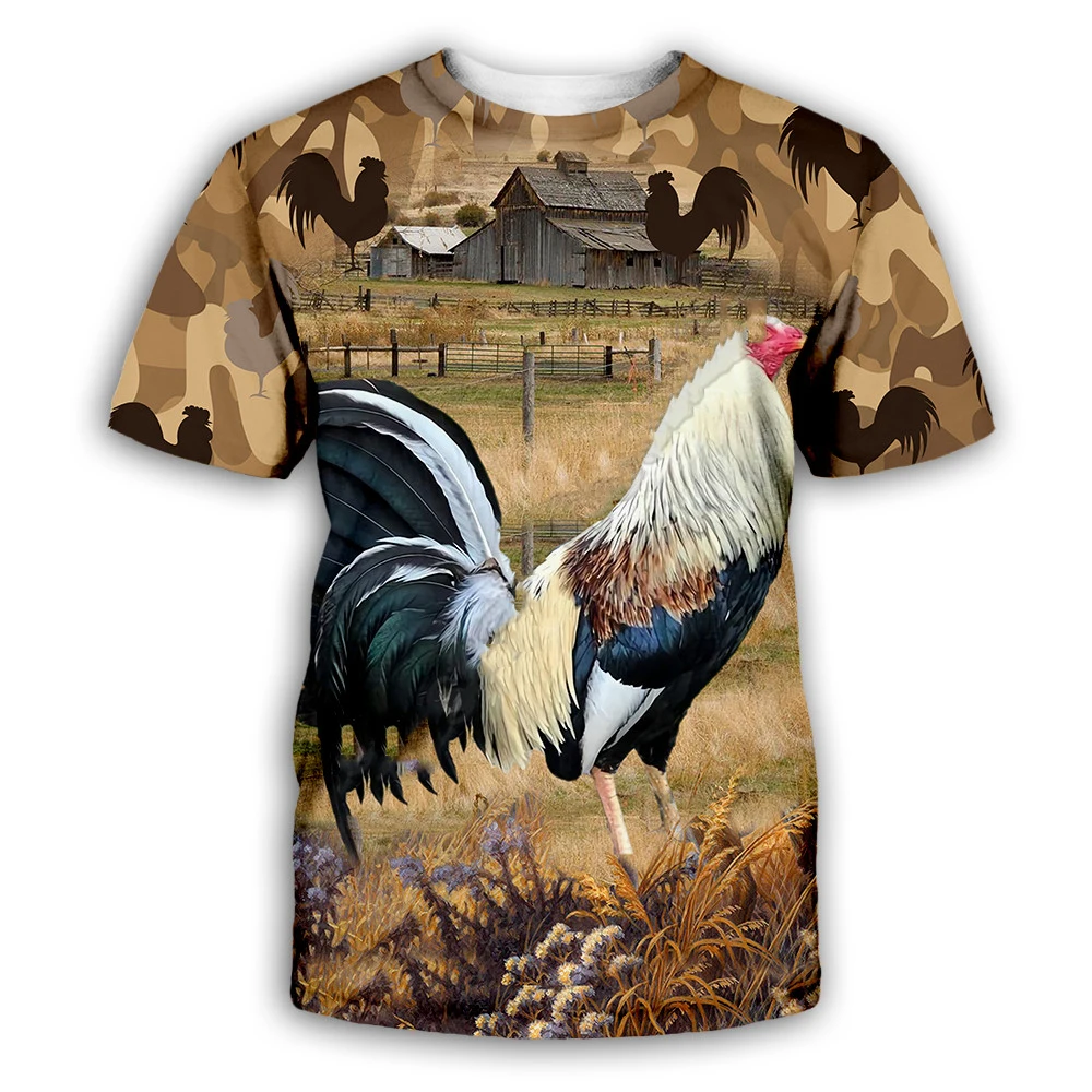 Летняя новая мужская футболка с 3D-принтом животного курицы, модная летняя уличная одежда в стиле хип-хоп с короткими рукавами, футболка большого размера унисекс