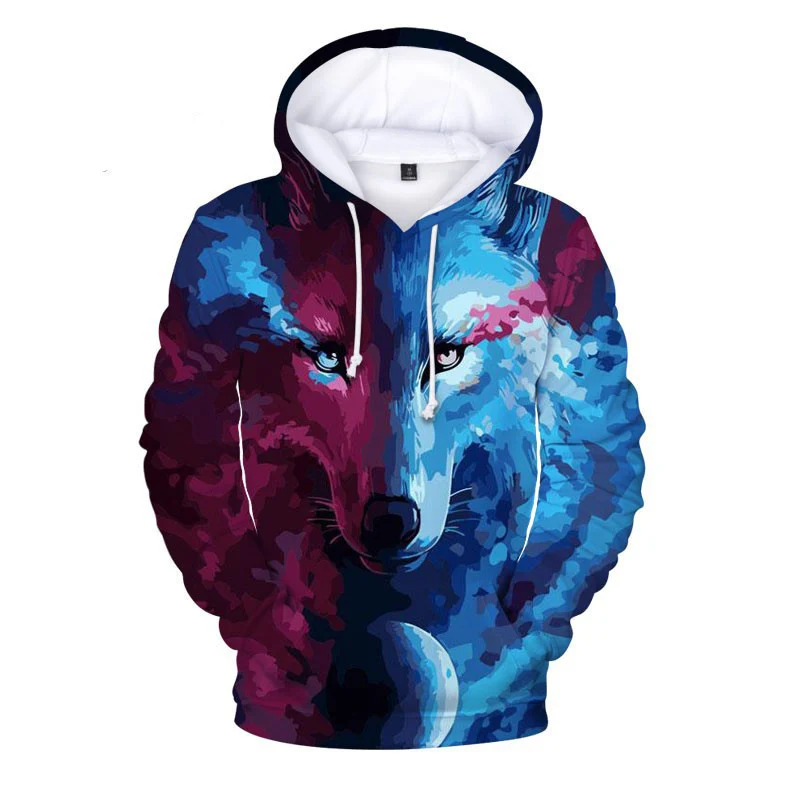Толстовка с капюшоном для мальчиков, свитшот с длинным рукавом и 3D-принтом волка, пуловер, верхняя одежда, весна-осень