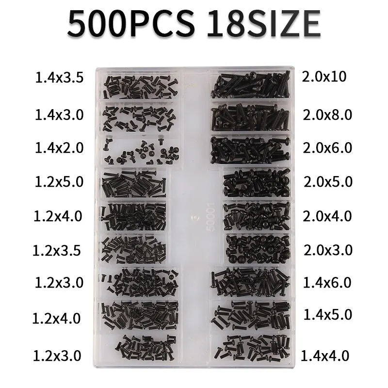 1. 18 типов s, каждый тип около 27 шт., всего около 500 шт./компл..2. Подходит для ремонта мобильных телефонов/компьютеров/часов и т. д.3. Хорошо упакованные и ассорти в пластиковой коробке, не нужно беспокоиться о повреждении или расстройстве.