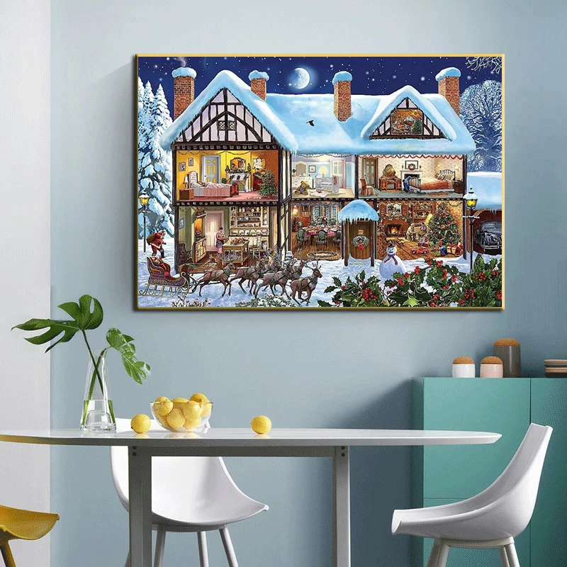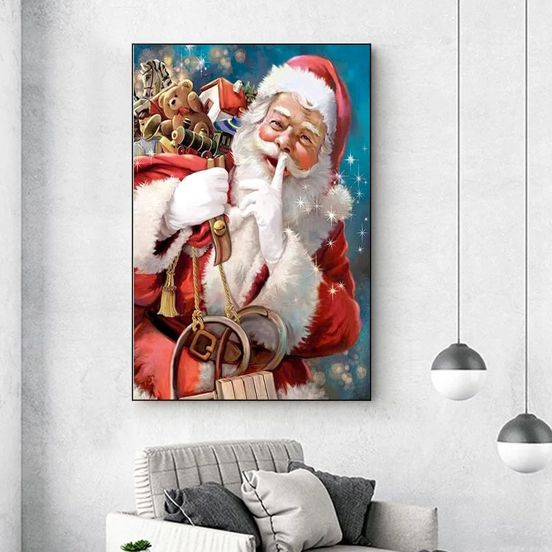 Рождественские картины Санта Клаус Лось и снег, Картина на холсте, настенные художественные современные плакаты и принты в гостиной, Декор для дома