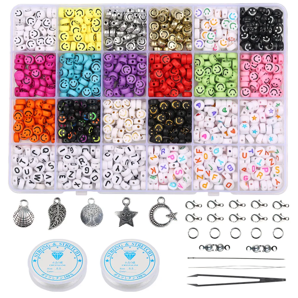 Набор коробок 26 Английских Букв бусины Смайлик акриловые бусины с инструментами для изготовления ювелирных изделий браслет кольца DIY аксессуары ювелирный набор