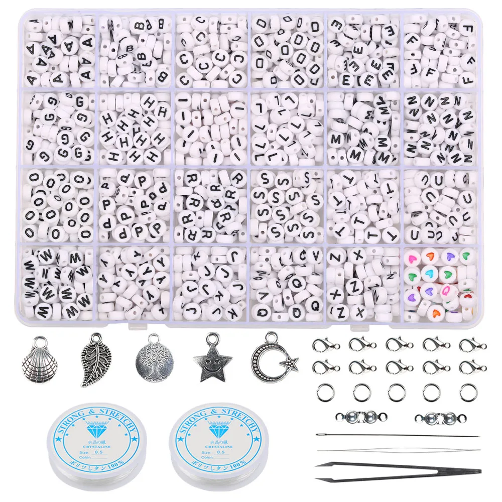 Набор из 26 акриловых бусин с буквами на английском языке и инструментов для изготовления ювелирных изделий