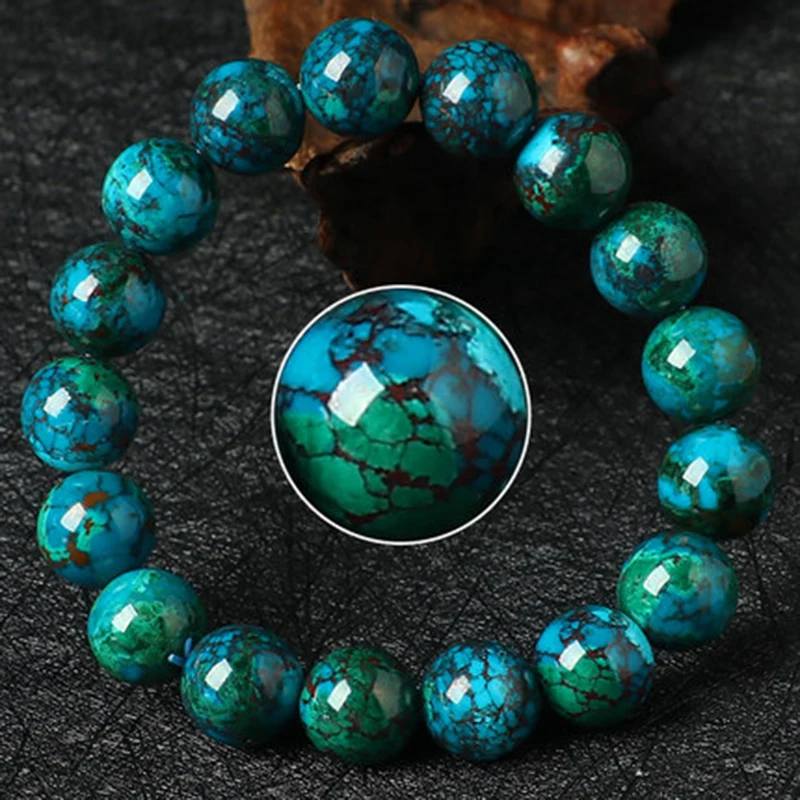 Браслет из малахитного камня, зеленая натуральная текстура, мужские браслеты с бусинами, рельефное лечение диабета, эластичное очаровательное ювелирное изделие ручной работы