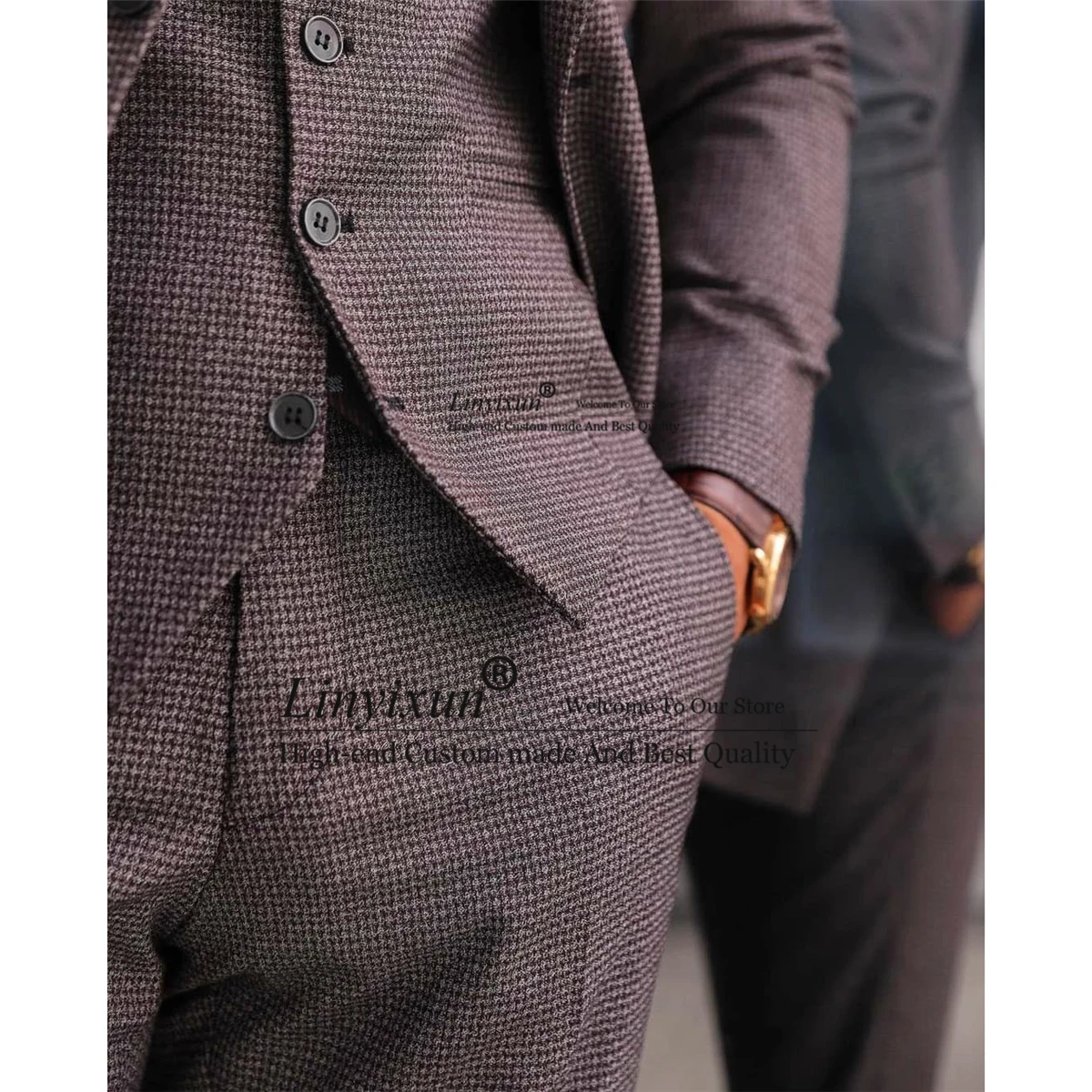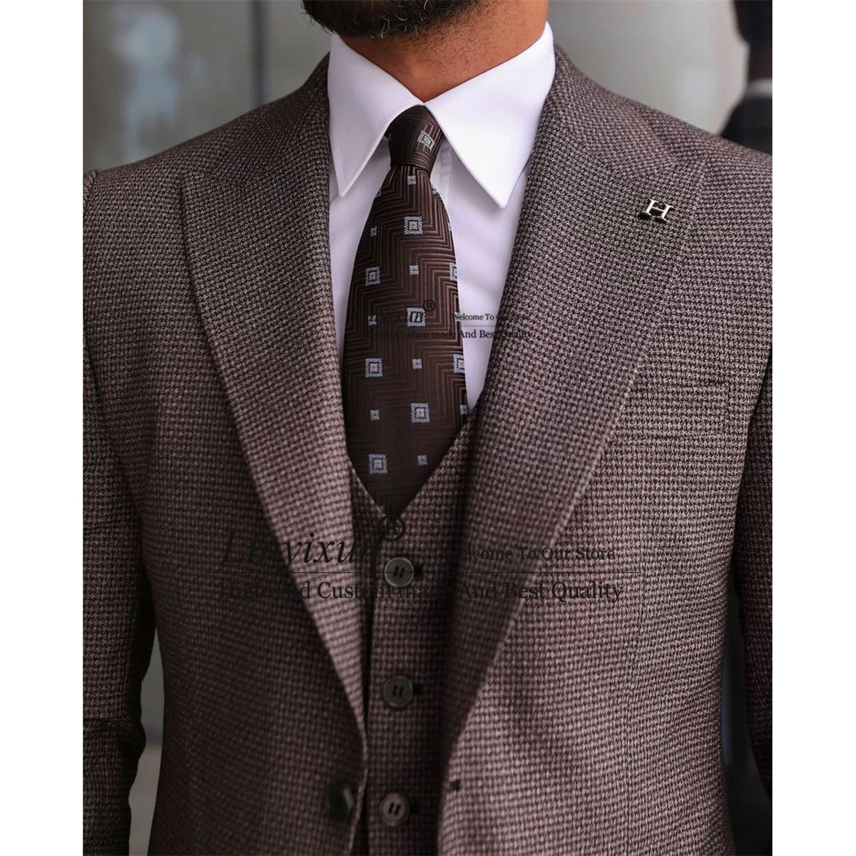 Твидовые шерстяные мужские костюмы, Официальный деловой пиджак в елочку, приталенные Свадебные смокинги для жениха, 3 предмета, пиджак, жилет, брюки, мужской костюм