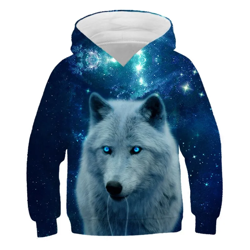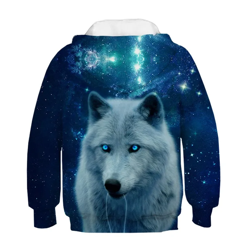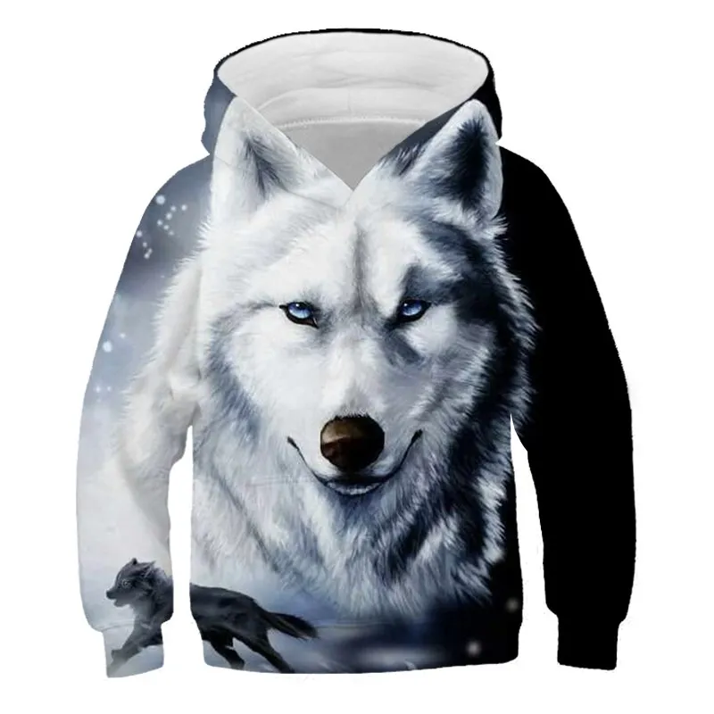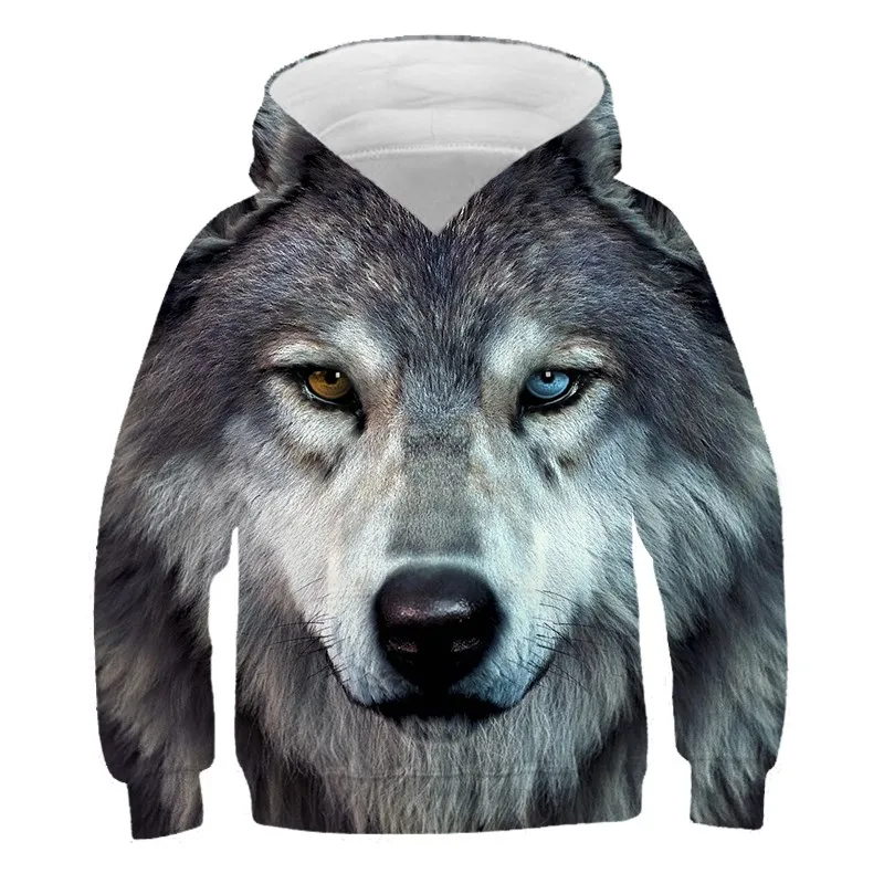 Детская толстовка с капюшоном и 3D-принтом волка, Осень-зима