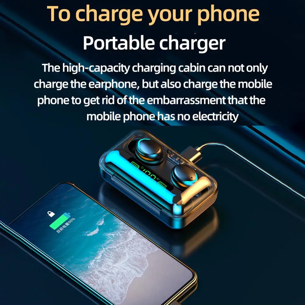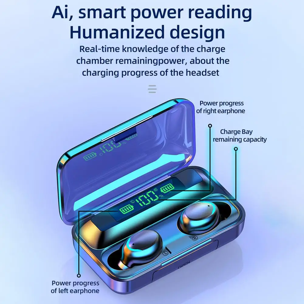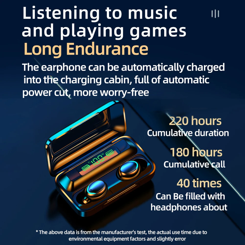 F9-5 TWS беспроводные Bluetooth-наушники 5,0, сенсорные наушники, 9D стерео Спортивная музыка, водонепроницаемые Airbuds со светодиодный ным дисплеем, гарнитура с микрофоном