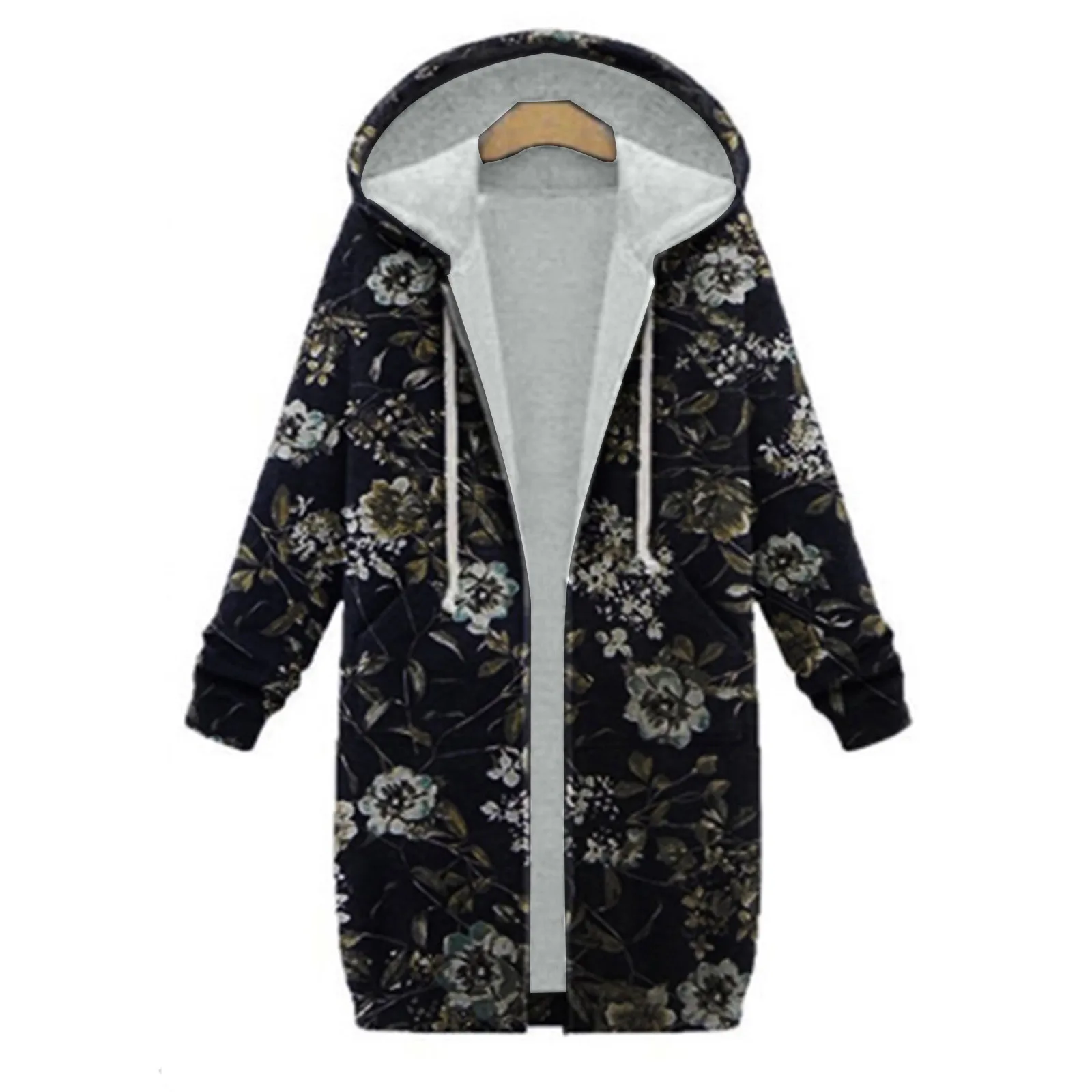 Женская Длинная толстовка с капюшоном, пальто, свитшот с цветочным принтом, карманы на молнии, зимний теплый кардиган из хлопка, женская верхняя одежда #40