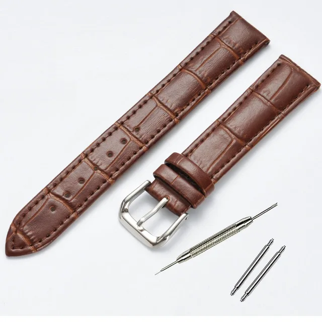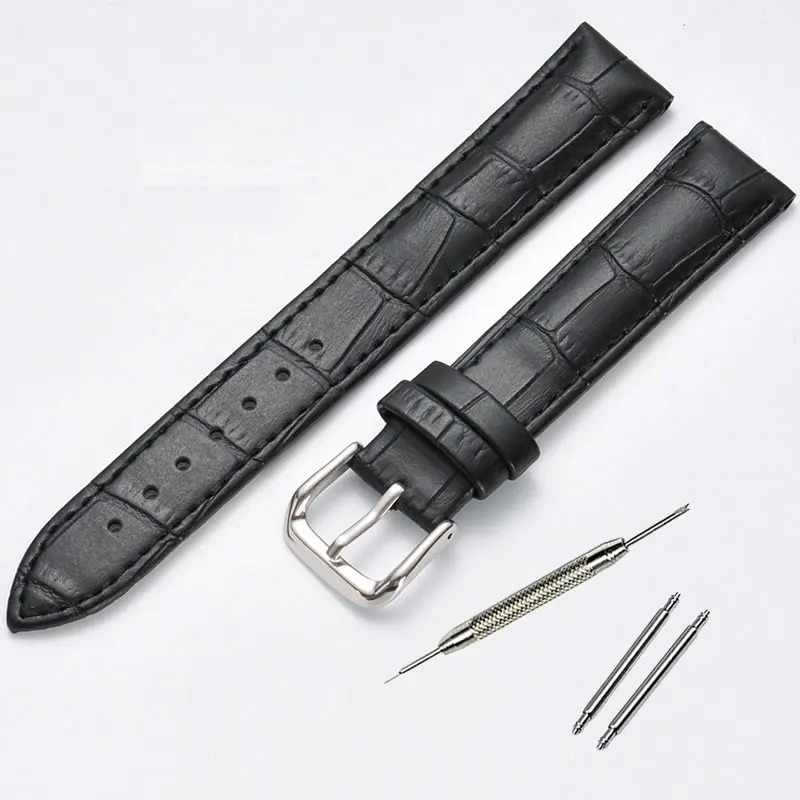Ремешок из натуральной кожи для наручных часов, браслет со стальной пряжкой с язычком, с инструментами, 12141618202224 мм
