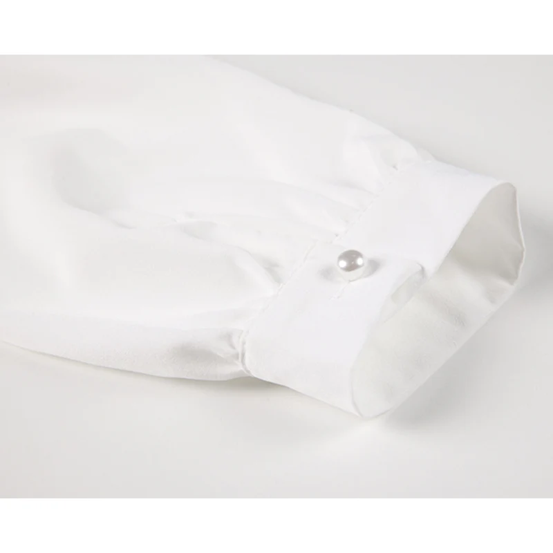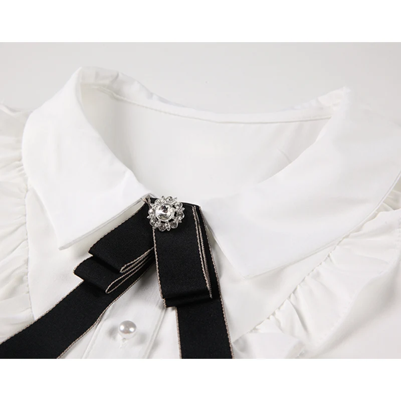Женская шифоновая рубашка с оборками, однотонная модная Осенняя однобортная блузка с отложным воротником и длинным рукавом