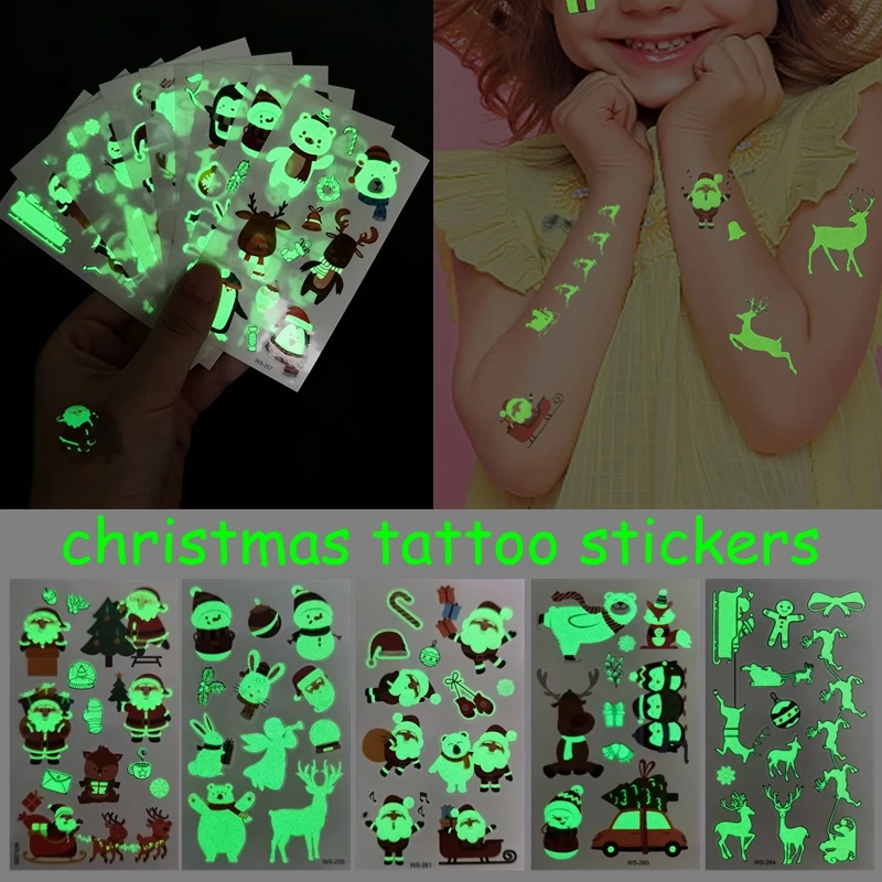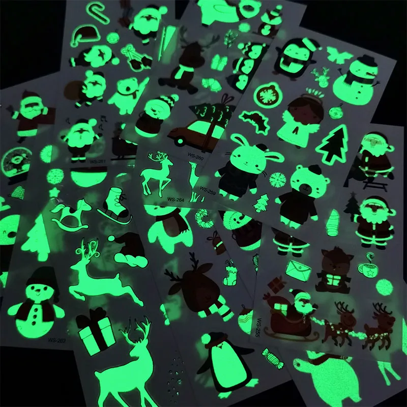 10 листов, новогодние светящиеся наклейки-тату для детей