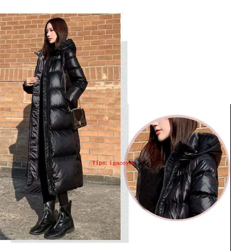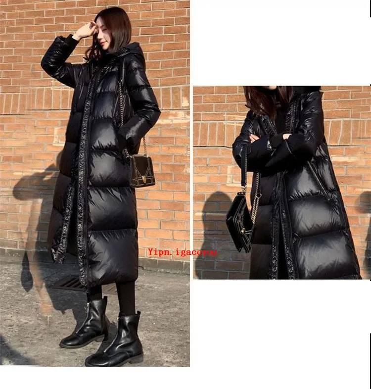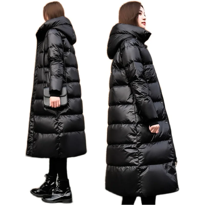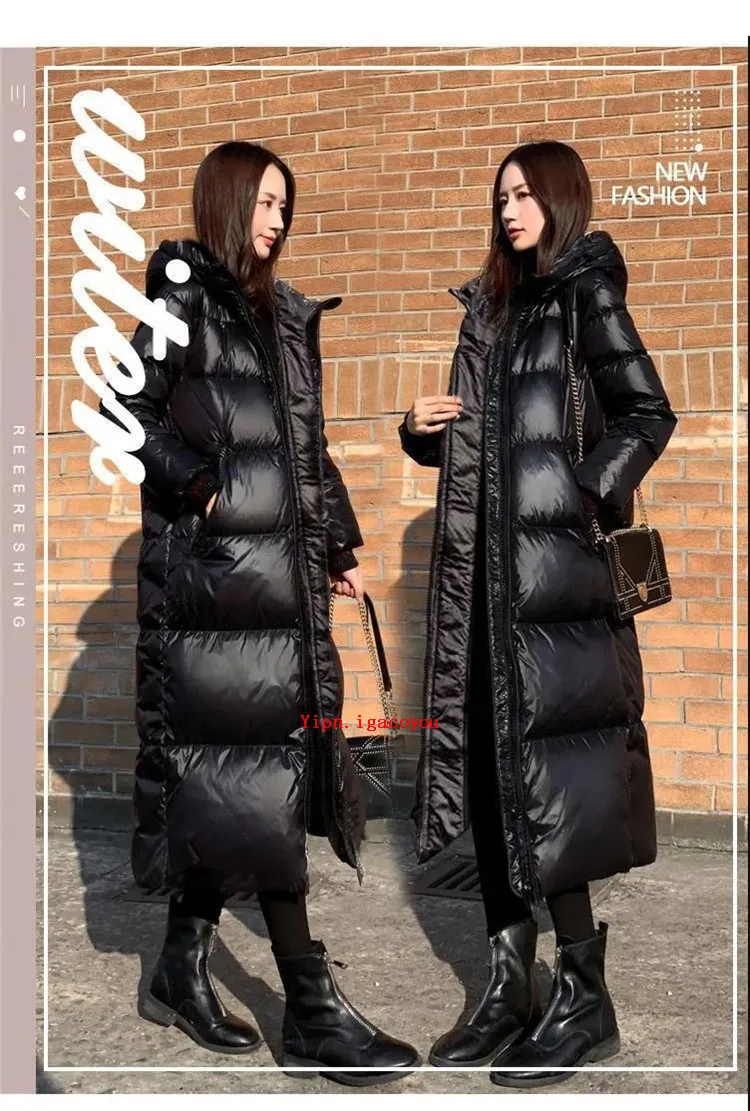 Женская зимняя парка с капюшоном, черная блестящая Толстая свободная длинная пуховая куртка из хлопка, женское ветрозащитное теплое пальто G1541, зима 2022