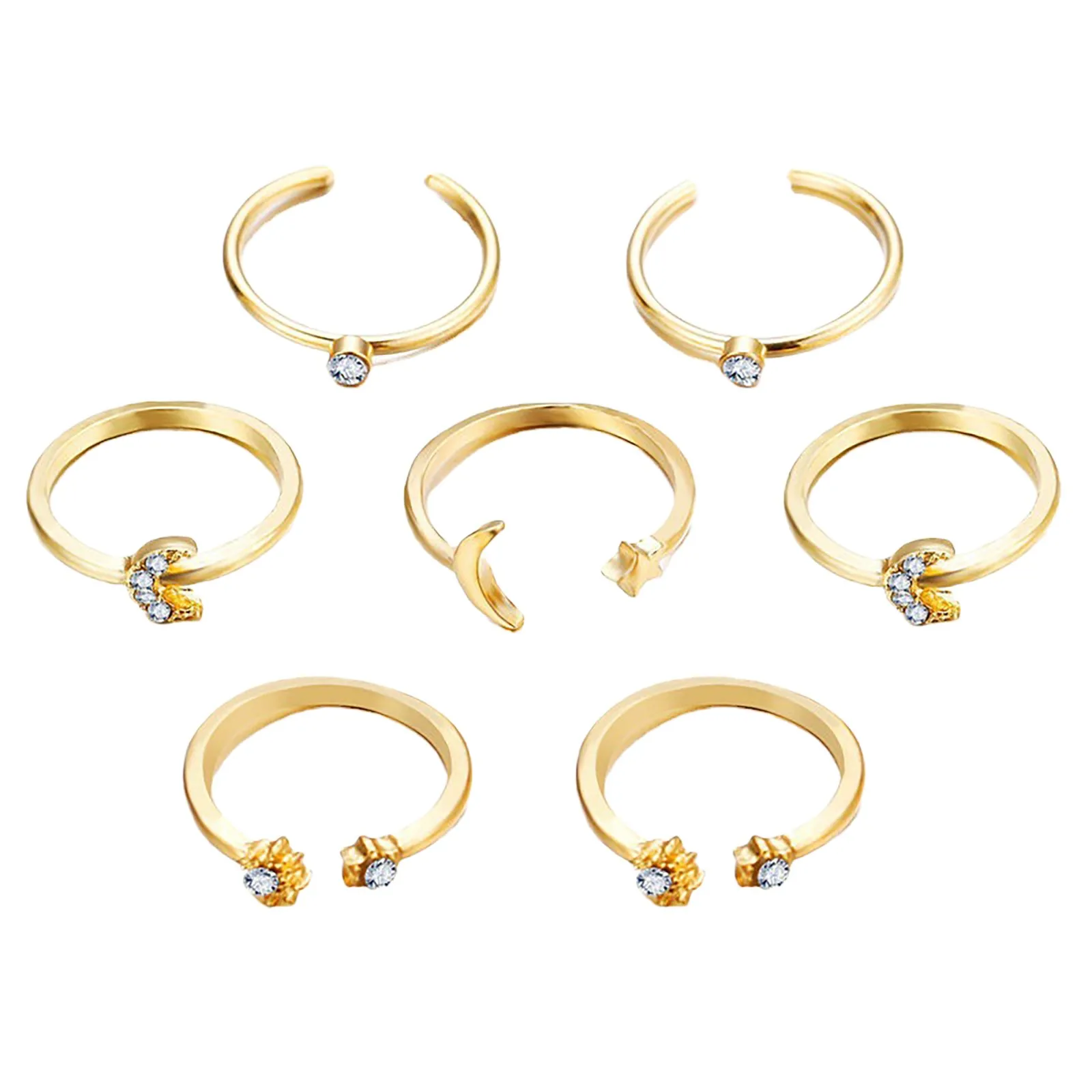 Набор колец в винтажном стиле, набор колец с бриллиантами, набор колец в богемном стиле с цветами, набор колец на лодыжку для женщин и девушек, золото # N