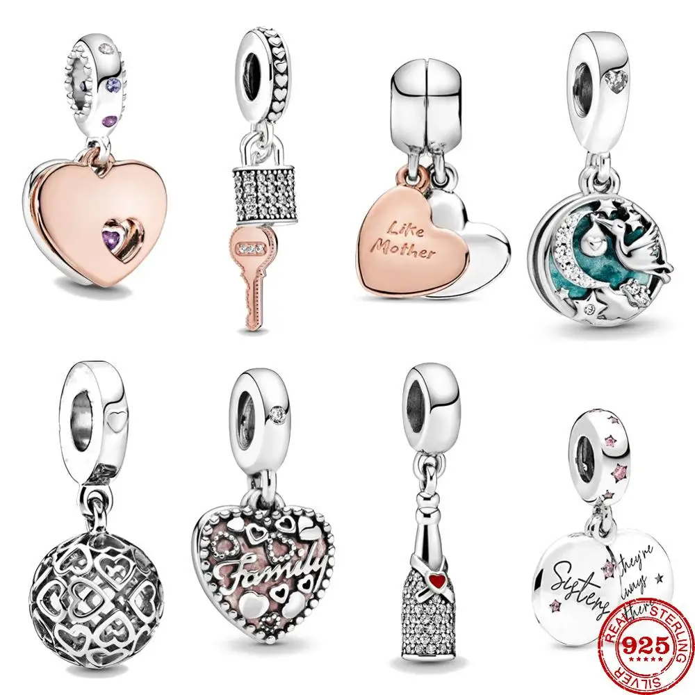 Новинка 2021, бусины-подвески в виде аиста и мерцающих звезд, подходят для оригинальных серебряных браслетов pandora 925, женские Украшения сделай сам