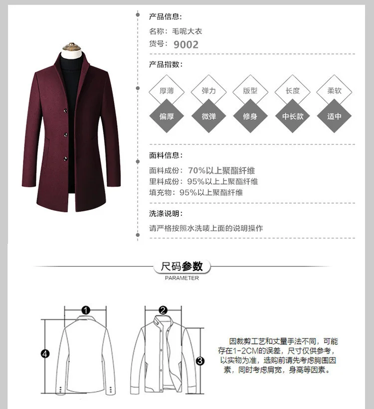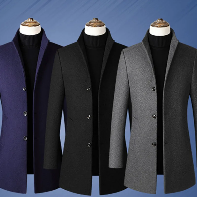 2021 Мужская шерстяная куртка, деловой Повседневный Тренч, Мужское ...