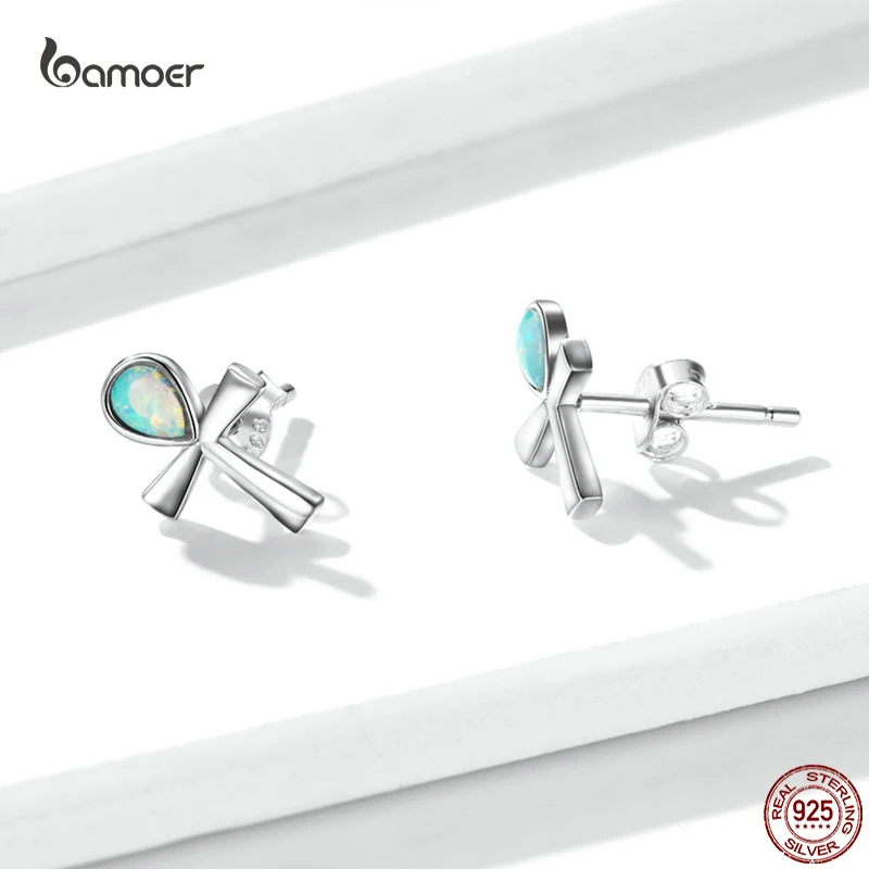 Женские винтажные серьги-гвоздики Bamoer Anka, 100% Стерлинговое Серебро 925 пробы, классические серьги-гвоздики с опалом, модные Универсальные ювелирные изделия, подарок