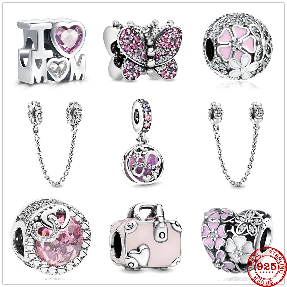 Подвеска в виде сердца и звёзд, серебристые бусины и безопасная цепочка с ПАВЕ, подходят для оригинального браслета Pandora