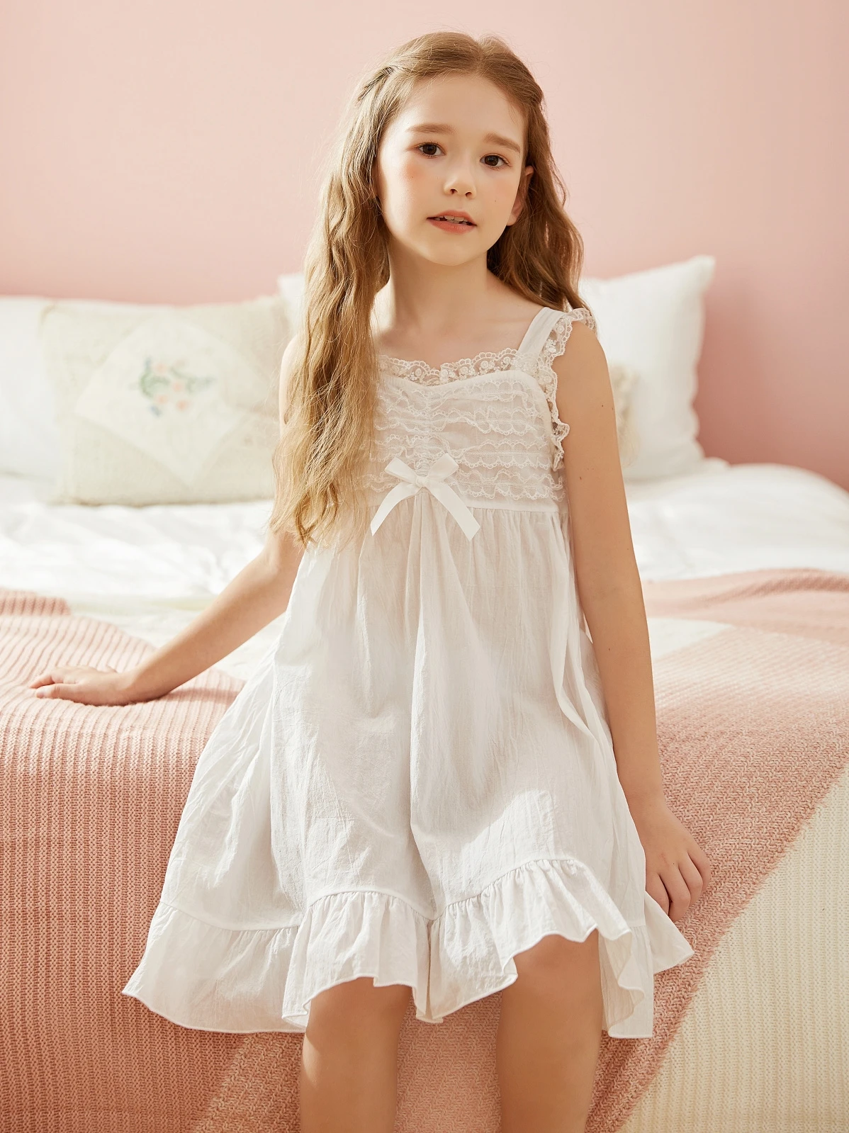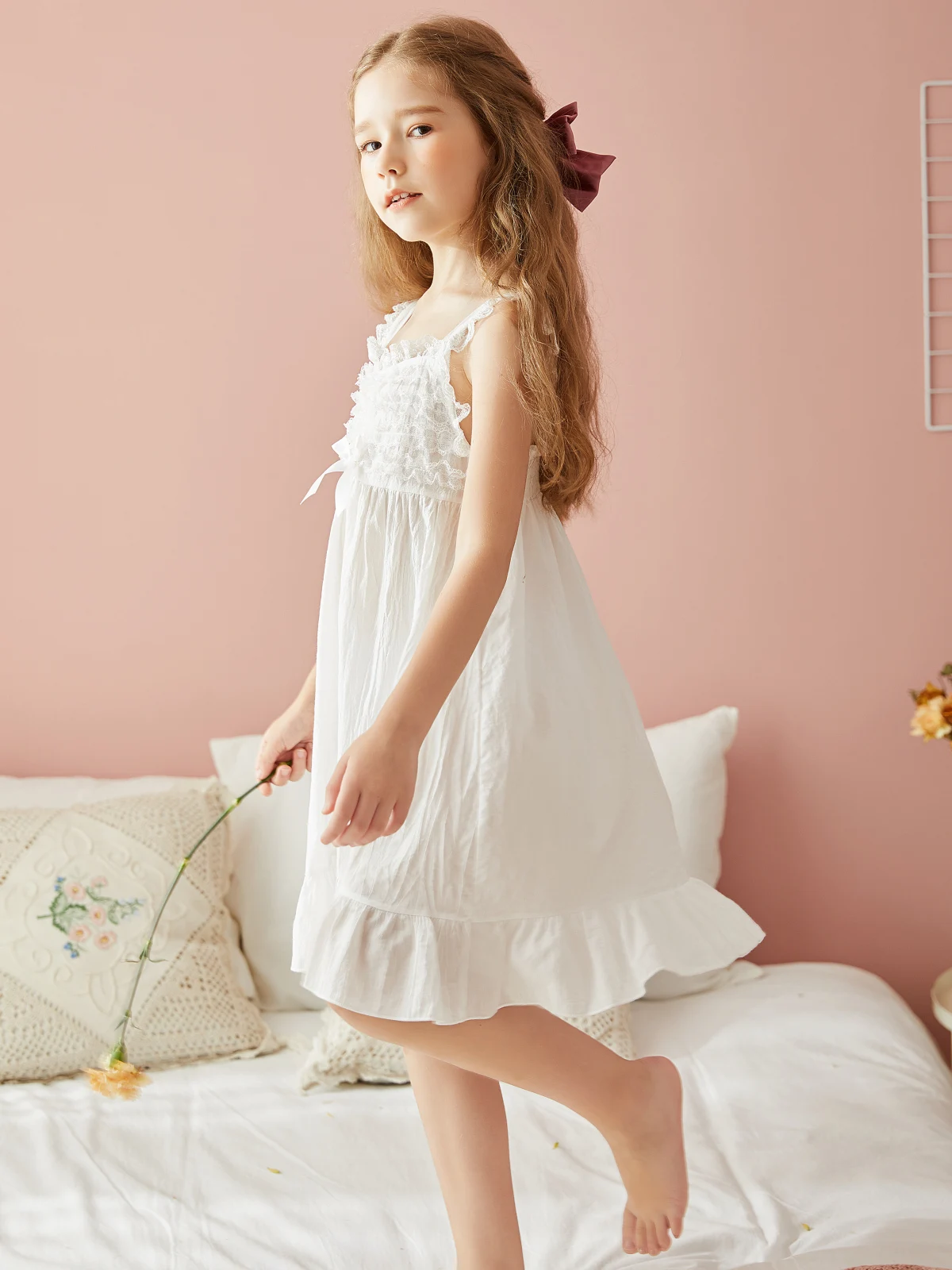 Детские стильные винтажные кружевные ночные рубашки в стиле принцессы