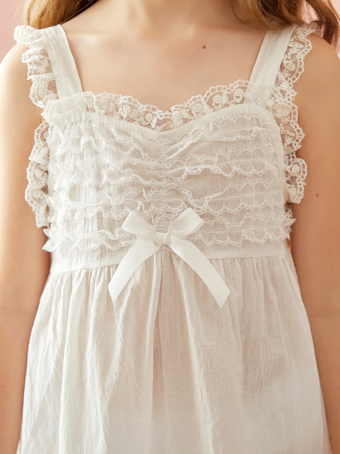 Детское платье в стиле "Лолита", рубашки для сна для принцесс, винтажные Детские Многослойные кружевные ночные рубашки без рукавов, летняя ночная рубашка для малышей