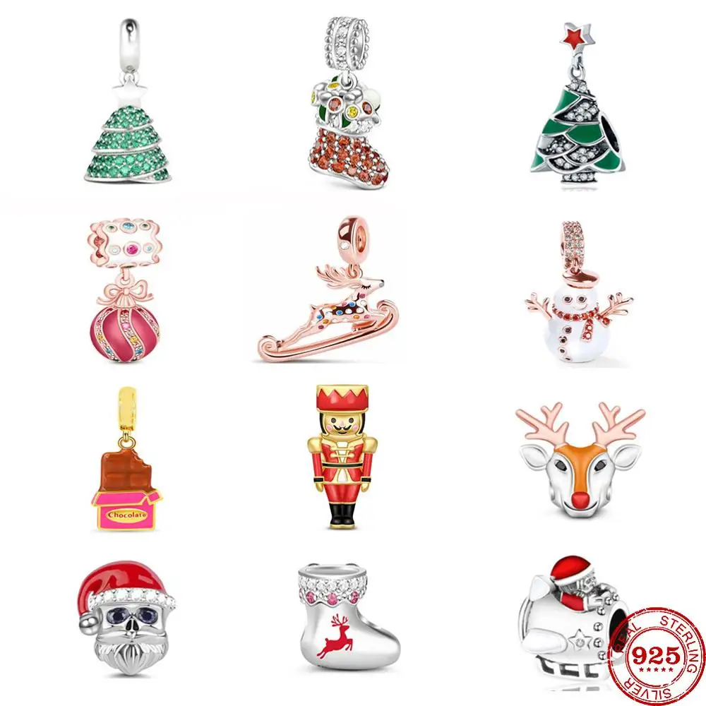 Новинка 2021, носки на рождественскую елку, лось, бусины для орехов, подходят к оригинальным шармам Pandora, серебро 925, браслет сделай сам, Женские Ювелирные изделия Berloque
