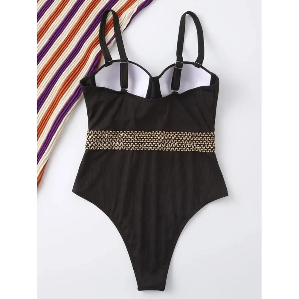 Соблазнительный слитный купальник 2021, черный женский купальник, ж...