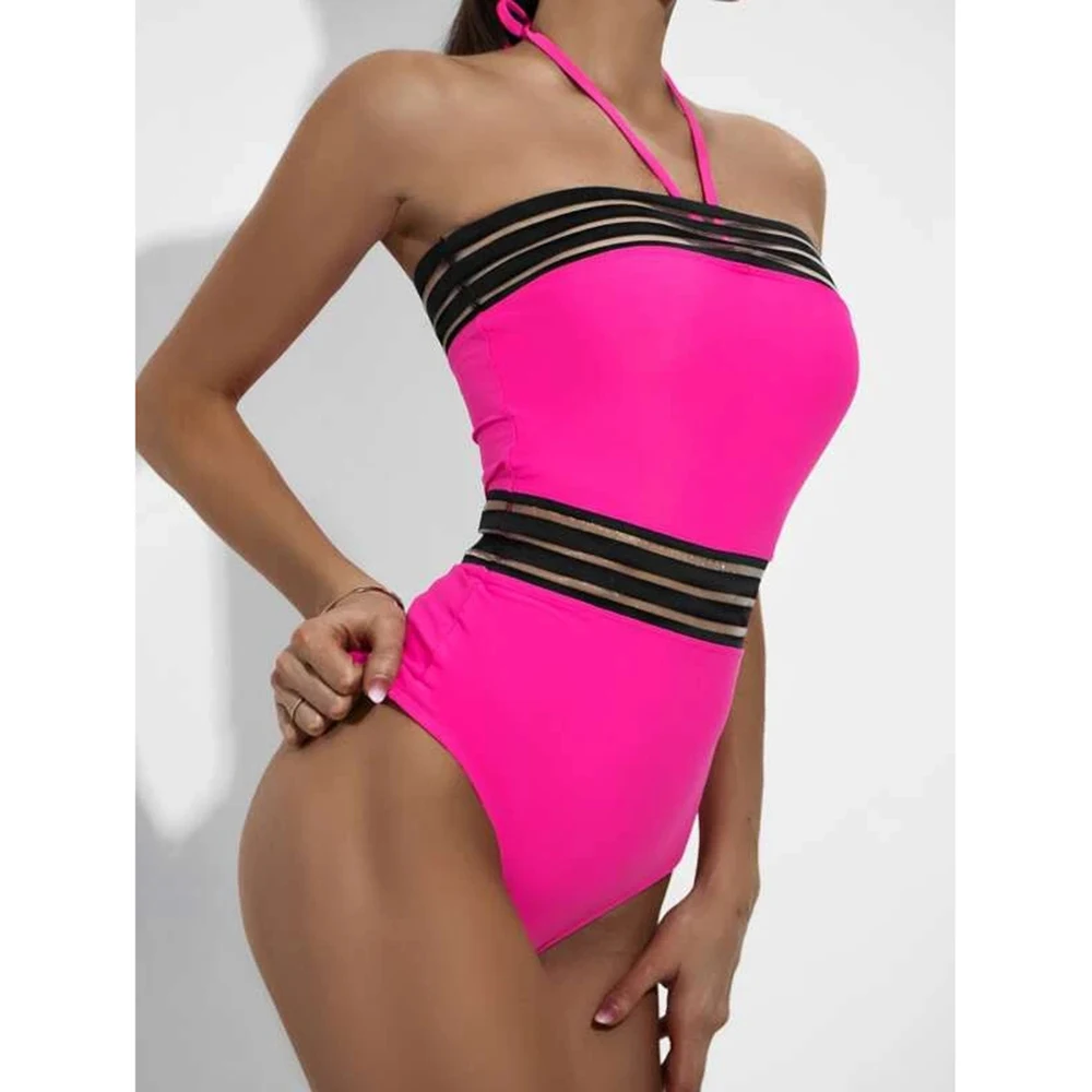Новинка, купальник с лямкой на шее, Женский сетчатый слитный купаль...